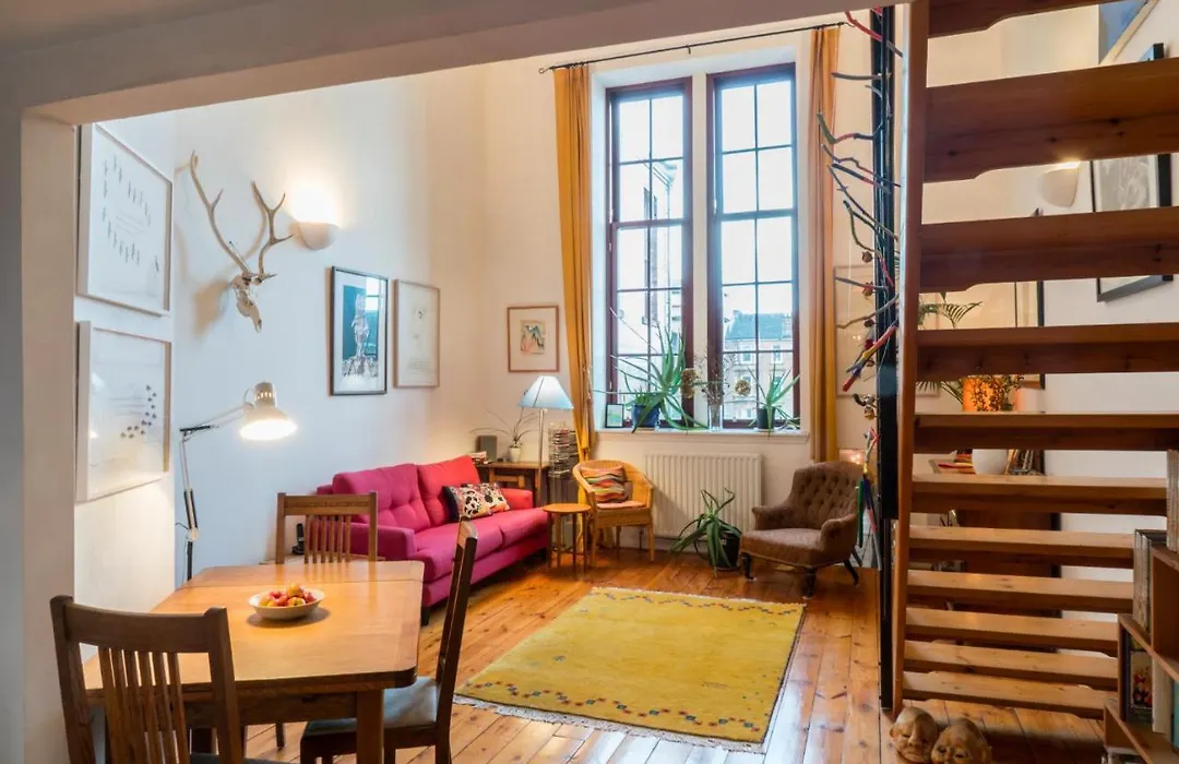 56平米的Beautifully Kept Mezzanine Flat ★School Of Art★公寓坐落于格拉斯哥市中心区,它附近有The Tenement House.4个人可以住在那里.
